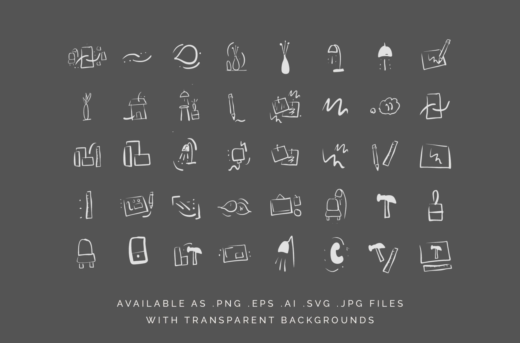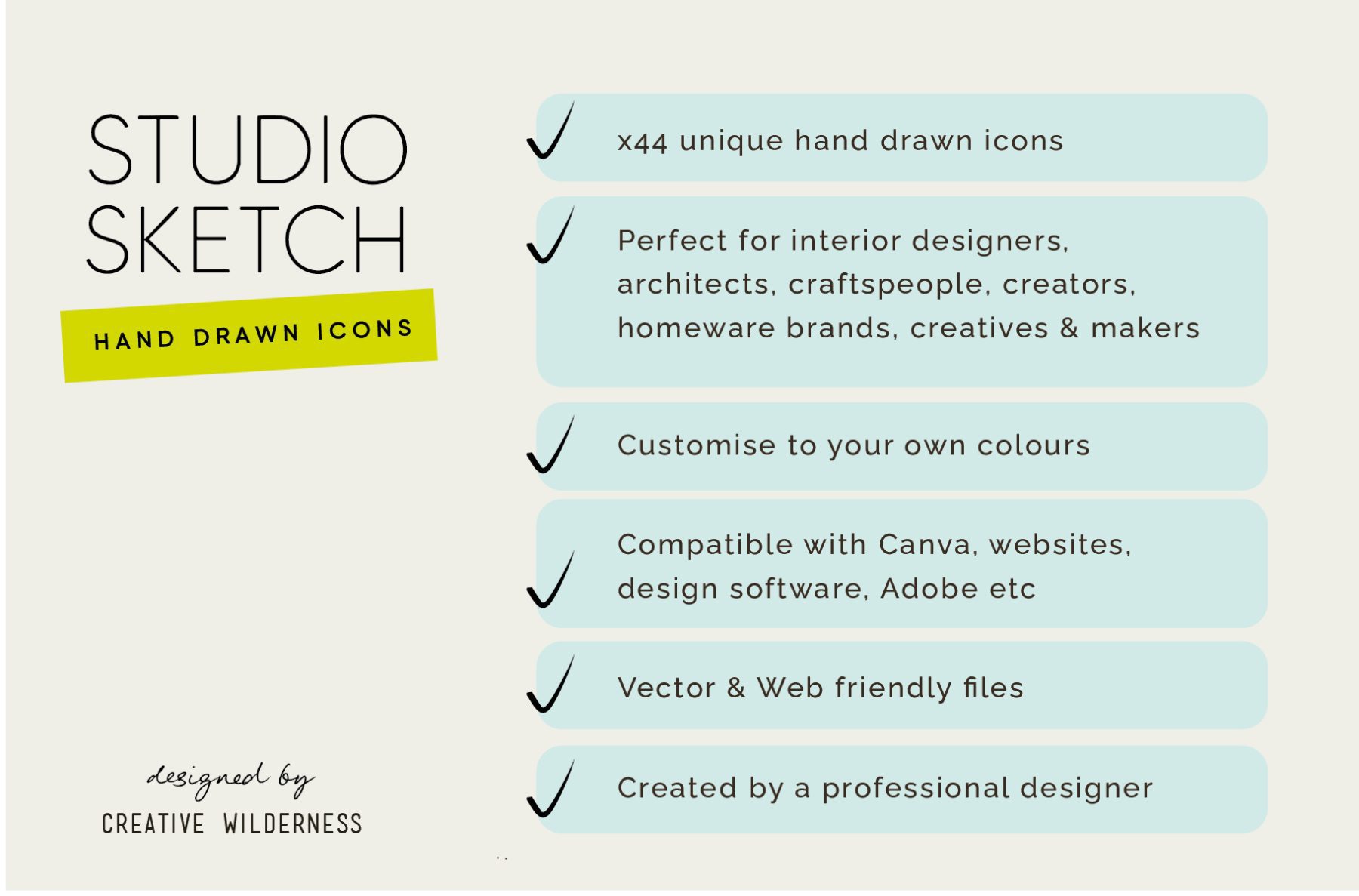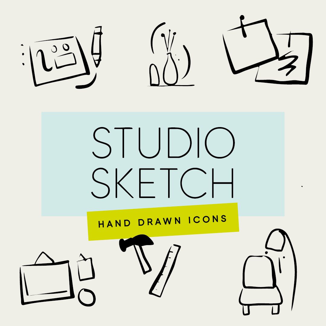 Add personality to your own brand using The Studio Sketch Creative Design Business Handdrawn Icon Collection.