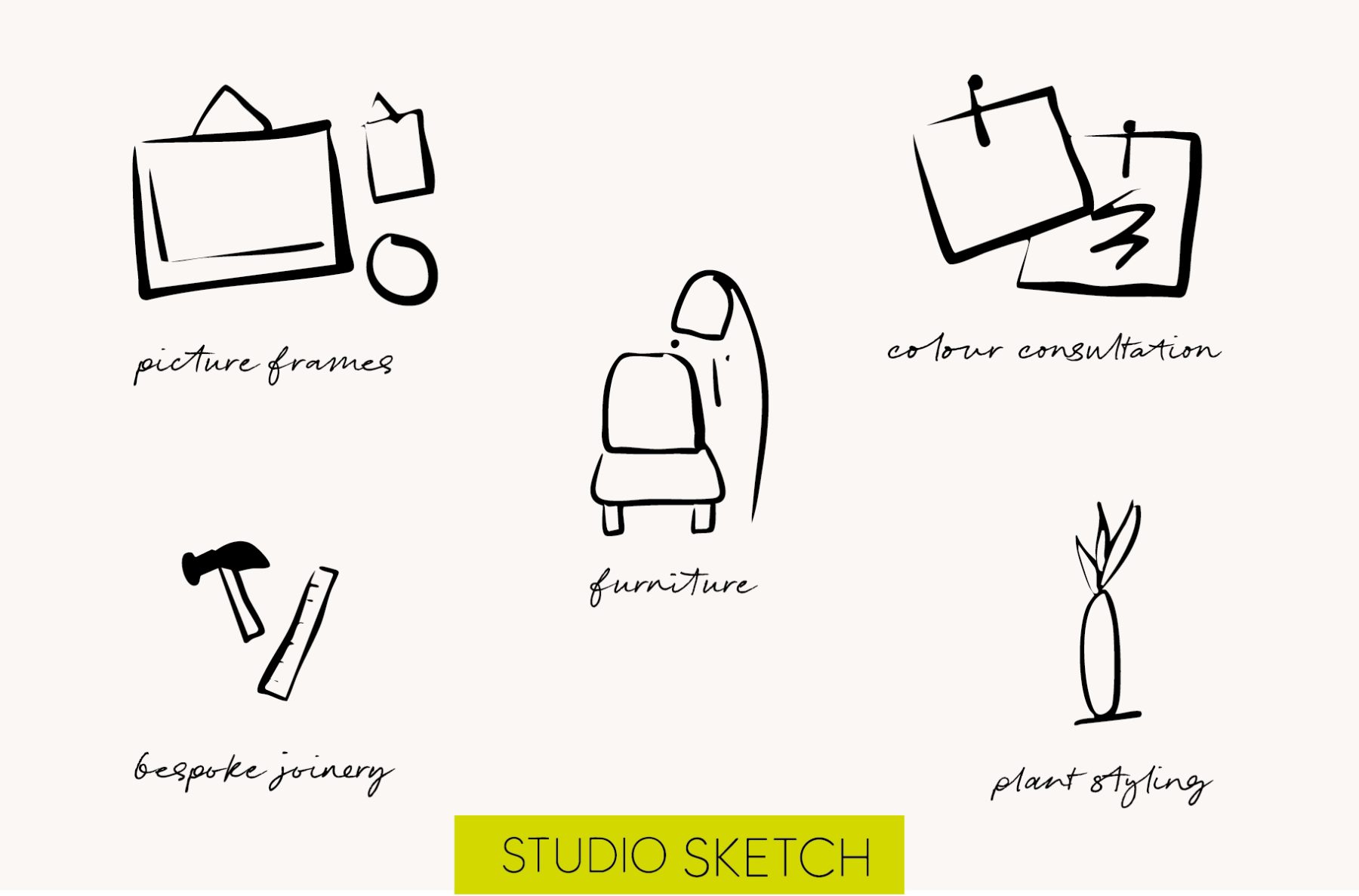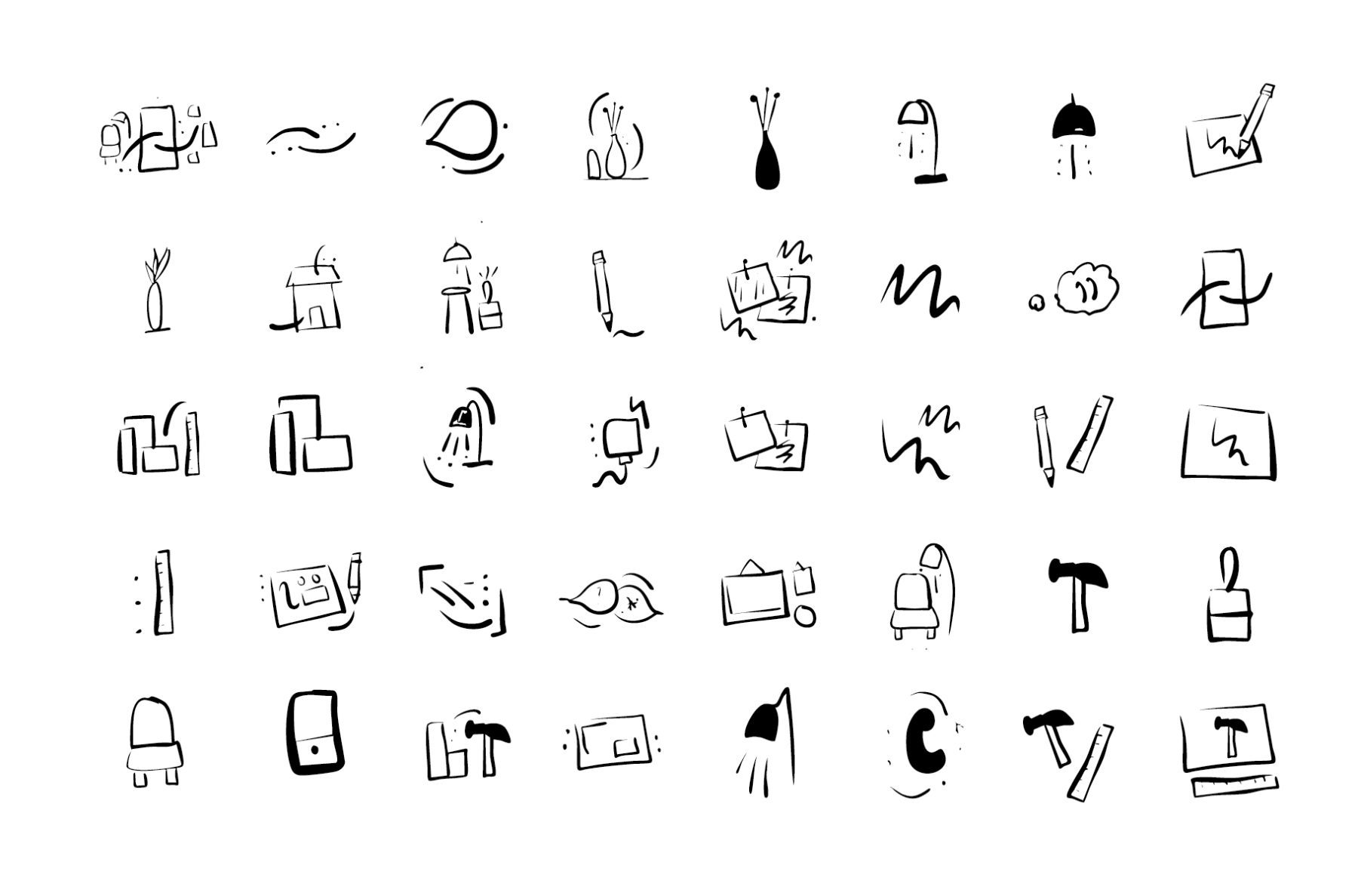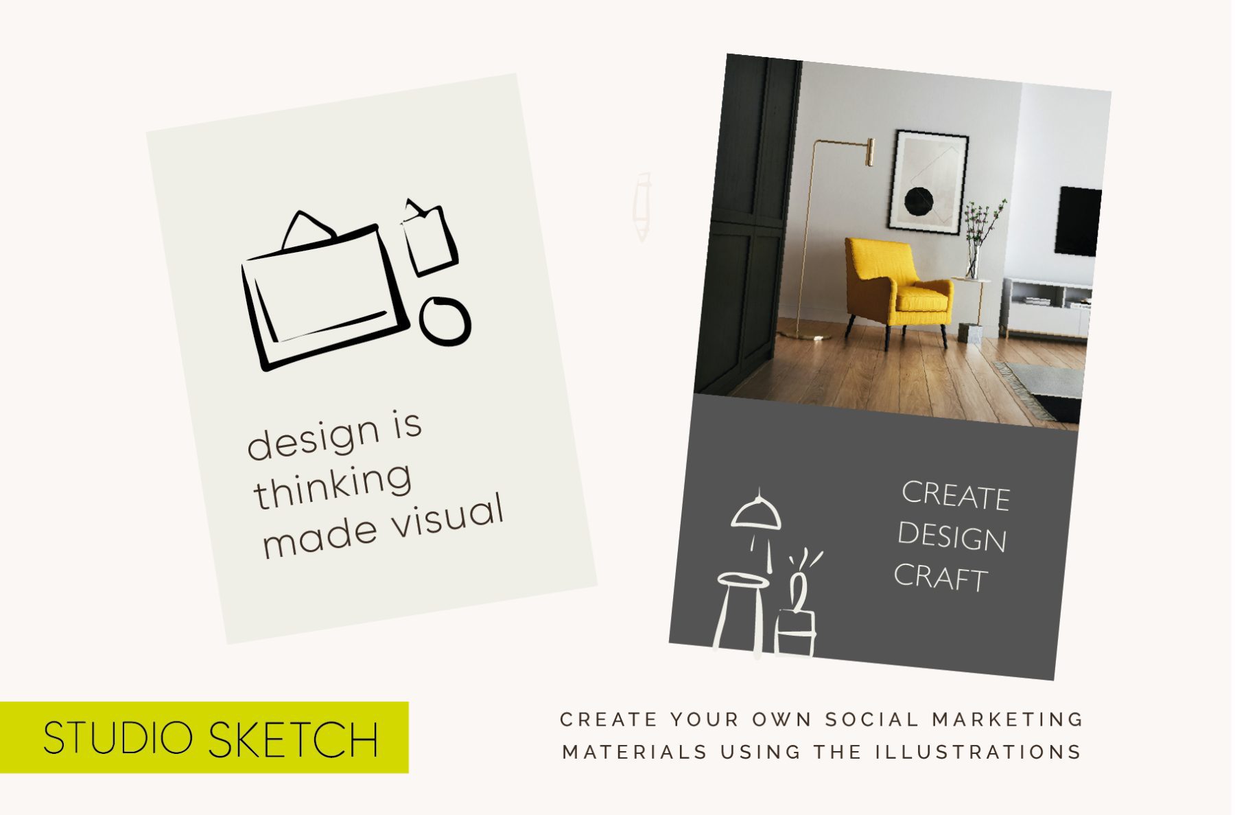 Studio Sketch is a hand-drawn icon set and features architectural, interior design, homeware, diy, making, graphic design and business icons to use on your website, logo or marketing materials.