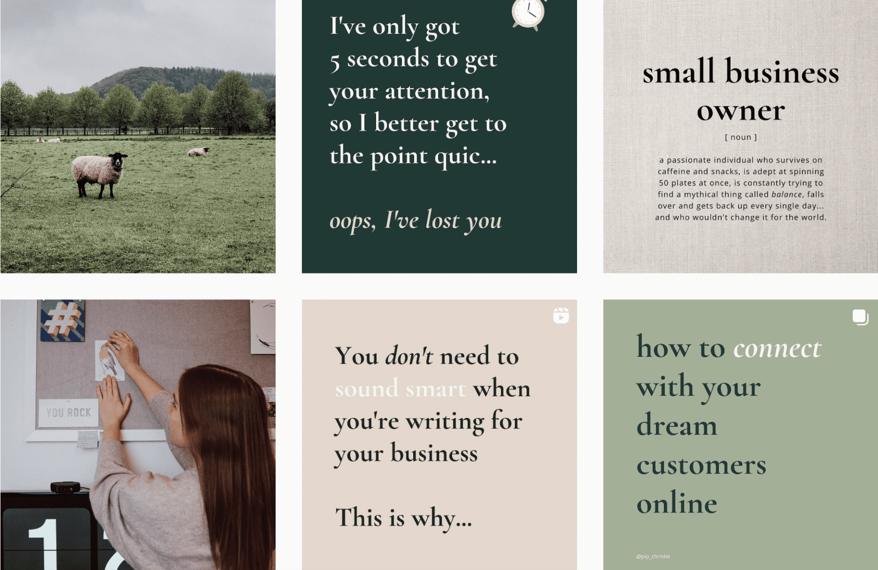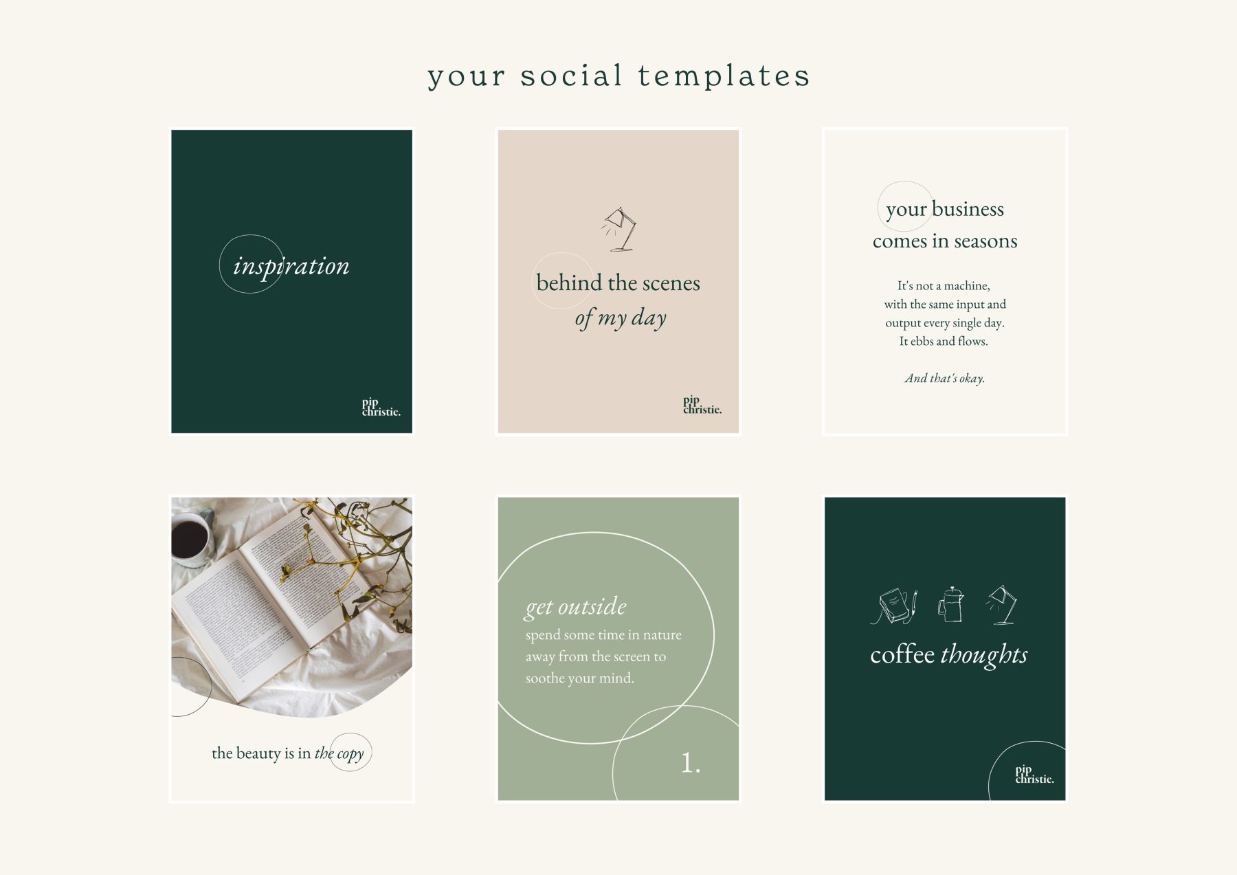 So, back to Pip’s design day! Here’s an example of Pip’s current social media and brand graphics that she’s currently using.